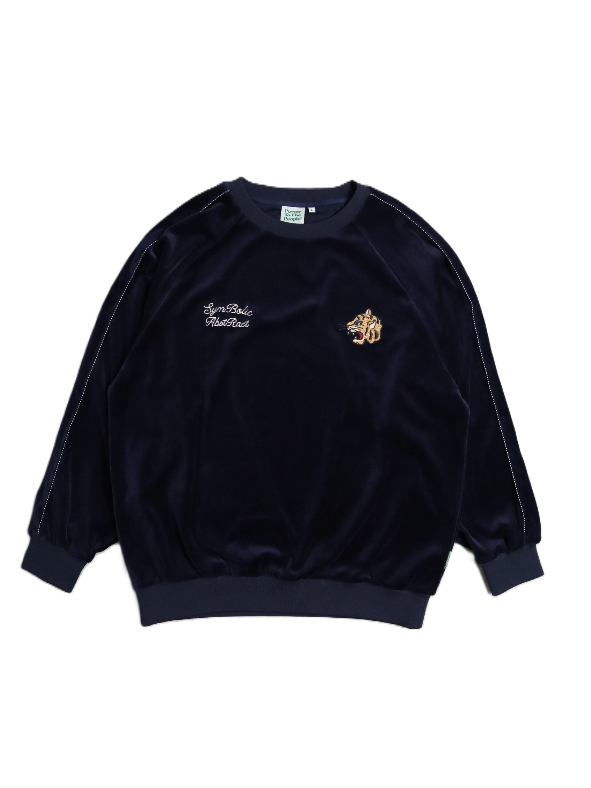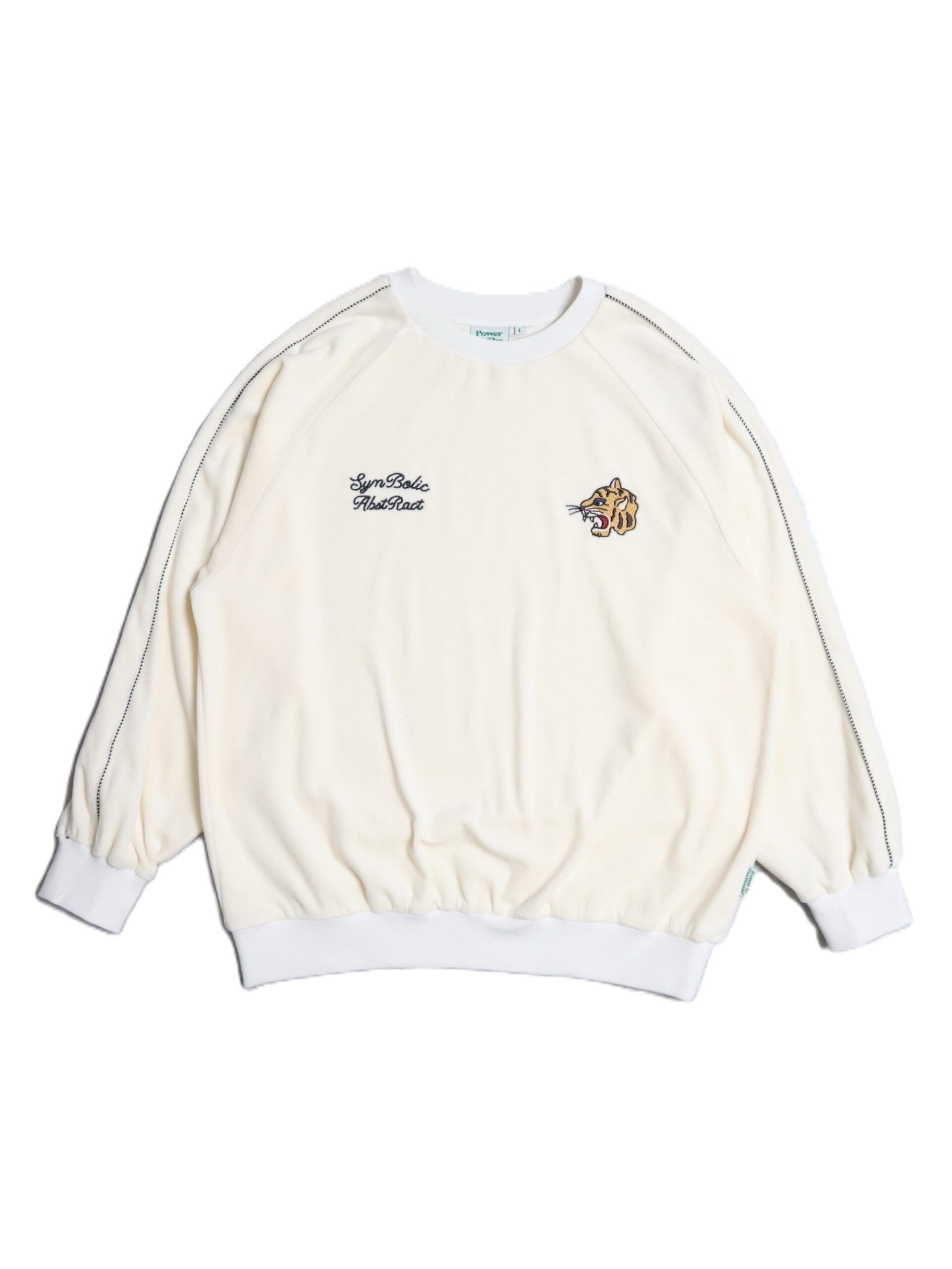 《2025秋冬系列》日本POWER TO THE PEOPLE-老虎絨面拉格蘭袖刺繡衛衣