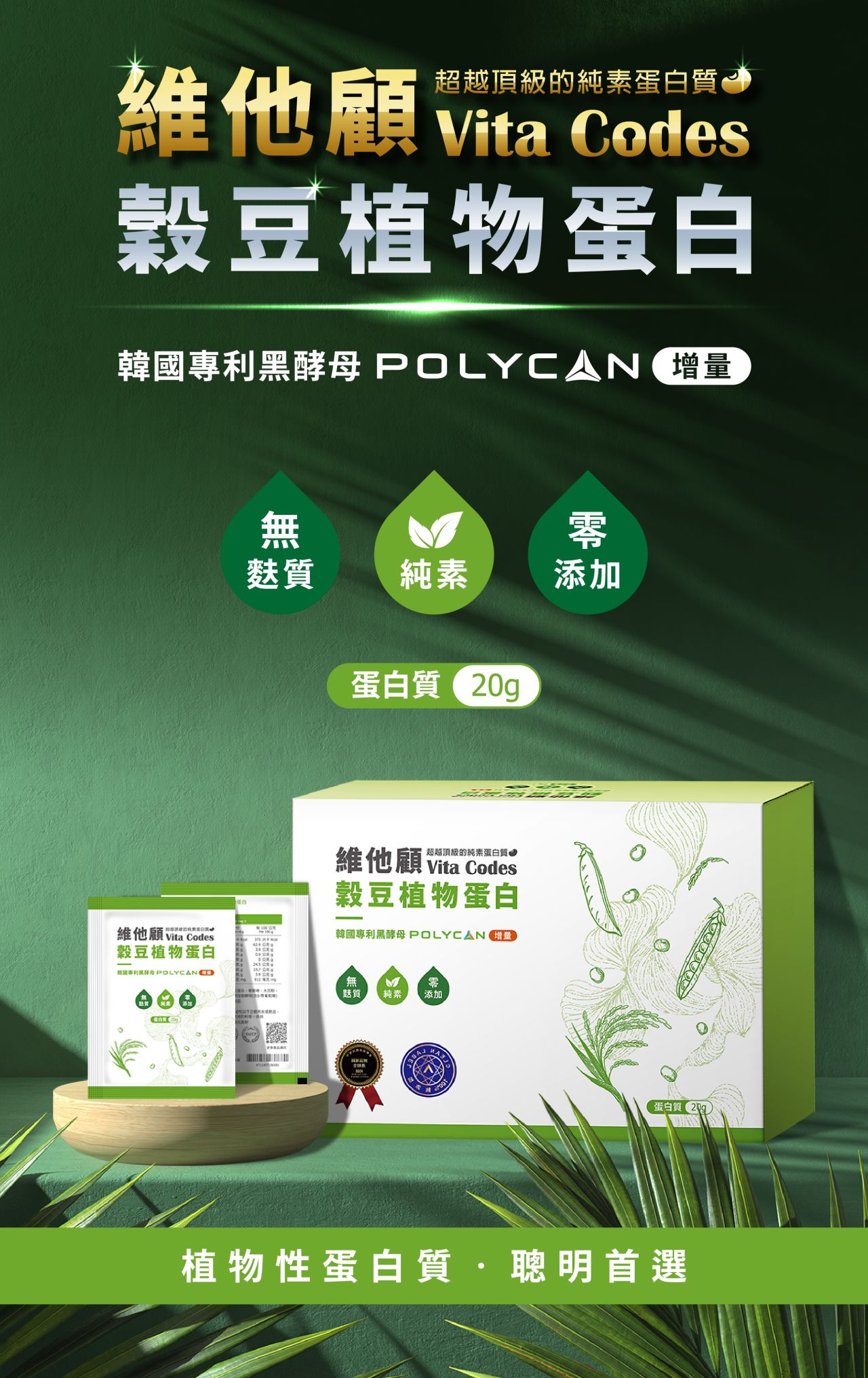 產品規格/維他顧 Vita Codes 穀豆植物蛋白 (14包盒裝/640克罐裝) |