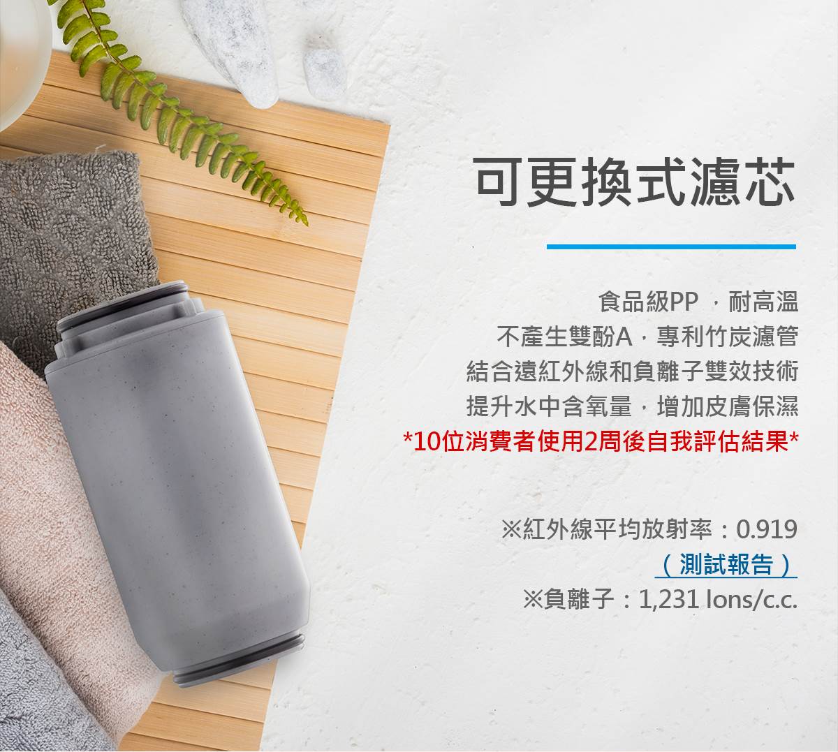 產品名稱 森林Spa活水沐浴過濾器 尺寸 115 * 55 * 55 mm 通水量 8L/min 本體材質 ABS、不鏽鋼 濾管材質 竹炭PP濾管 濾材 日本進口亞硫酸鈣、美國進口KDF合金、斯里蘭卡椰殼活性碳 商品重量 275g 產地 台灣