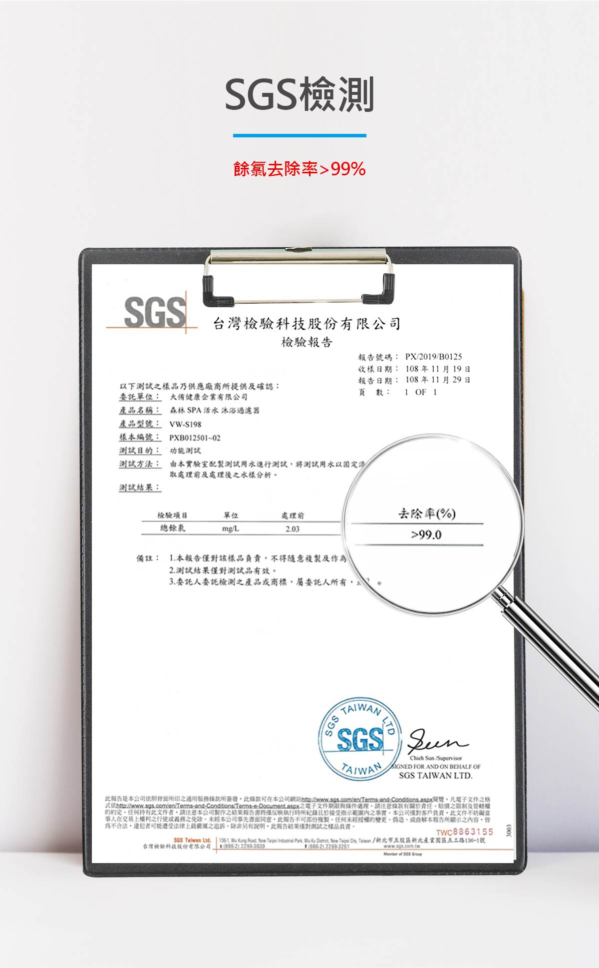 SGS檢測餘氯去除率超過99%